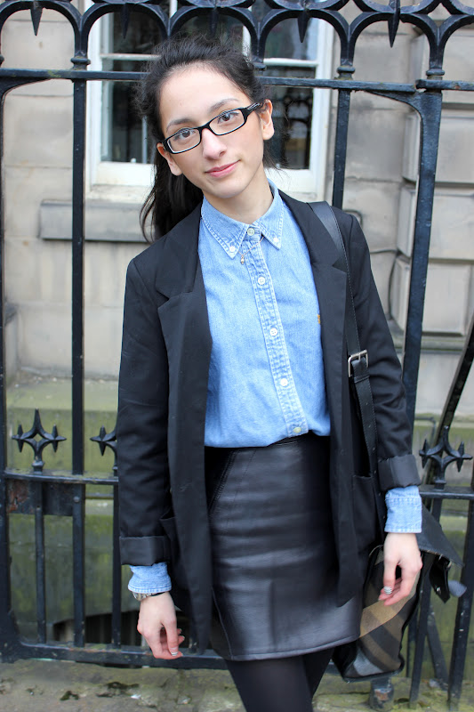 In continuation of my last post, this is what I wore to see the Christopher Kane talk at ECA. This top is actually my mum's, but she never wears it anymore so it's almost technically mine now... Also, I'm sure you've seen my blazer before, I wear it quite a lot... I thought it would be a good choice of jacket as it was really quite warm in Gala. Unfortunately, the same could not be said for the climate Edinburgh :( But I braved it and pulled through the windy weather. This skirt is new by the way - I bought it in Urban Outfitters in London. It's real leather and I didn't pay all too much for it so I feel that's always a good thing :) Also, I got a lot of love for my shoes on LookBook! I just thought I'd say they're not new and I wear them to death! They're only from Topshop and I got them in December, I don't know if they still have them in stock though, but it's worth having a look! Anyway, I'm home this weekend so I might go a bit quiet! Hope you all have a good weekend :)